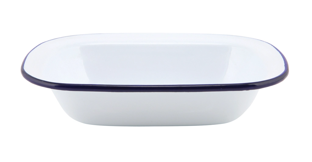 Art. Nr. 44020 Kategorie Emaille Schlagwort Blau Emaille Präsentationskonzept Rechteckig Schale WeißVPE: 12 Stück